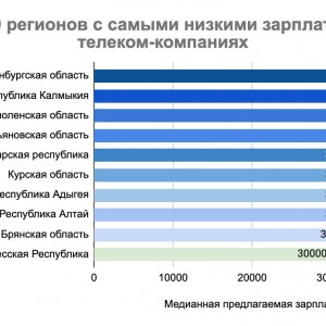 Российский телеком-провайдер «Телфин» совместно с крупнейшей российской онлайн-платформой по поиску работы и сотрудников hh.ru провели анализ вакансий телеком-рынка в 2023 году. Исследование проводилось на базе данных hh.ru за период с 2021 года по июнь 2023 года включительно. Всего было проанализировано более 313 тыс. вакансий в телеком-компаниях России. В аналитике отражены изменения зарплат в отрасли в зависимости от регионов, а также представлены данные по наиболее популярным и востребованным специальностям в телеком-рынке и требованиям работодателей. По данным «ТМТ Консалтинг», объем рынка телекоммуникаций в 2021 году превысил 1,8 трлн руб. Годовая динамика рынка составила 3,2%, это один из самых высоких показателей за последние годы. В 2022 году рост рынка составил 1,2%, это один из самых низких показателей за последние годы, ниже динамика была в 2020 году. В 2023 году аналитики ожидают сохранение роста телеком-рынка на уровне близком к динамике 2022 года. Спрос на специалистов в этом секторе в 2021 и 2022 годах повторял динамику роста рынка. Согласно данным hh.ru, в 2021 году общее количество опубликованных вакансий в телеком-бизнесе составляло 128 тыс. В 2022 году найм специалистов в сфере телеком сократился суммарно по году на 8,6% — количество вакансий составило 117 тыс. Начало 2023 года стало для телеком-рынка периодом активного роста. За первое полугодие 2023 года телеком-компании открыли более 68 тыс. вакансий, что на 16,24% выше показателя первого полугодия ... читать далее.