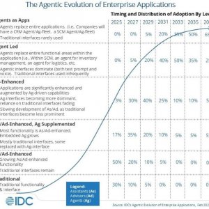 07.04.2025 ИТ-рынок, Искусственный интеллект, ИТ-бизнесГенеративный и агентный искусственный интеллект начали полностью менять способы разработки и доставки корпоративных приложений и работы пользователей с ними, пишет в корпоративном блоге Эрик Ньюмарк, вице-президент IDC по программам SaaS, корпоративных приложений, отраслевых облаков и цифровой коммерции. Реактивные ИИ-помощники, которые сотрудничают с людьми для повышения производительности и эффективности, а также ИИ-консультанты, предоставляющие организациям расширенные инсайты и рекомендации, быстро стали обязательными элементами современного ПО. ИИ помогает превратить программные решения, которые исторически были пассивными инструментами, в активных партнеров по принятию решений благодаря достижениям в области машинного обучения, обработки естественного языка, разработки больших языковых моделей (LLM) и широким достижениям в области генеративного ИИ. По оценкам IDC, более 50% присутствующих на рынке корпоративных приложений уже оснащены ИИ-ассистентами или ИИ-советниками, причем большинство программных решений сейчас предлагают хотя бы некоторый уровень этих встроенных возможностей. Кроме того, около 20% участников рынка дополняют свои приложения полноценными агентами ИИ. Эти агенты самостоятельно воспринимают, оценивают и действуют на основе данных, помогая организациям перейти к более интегрированным и автономным методам работы. Агентный сдвиг Если помощники и советники на базе ИИ уже стали нормой, то ИИ-агенты собираются выиграть гонку, и до этого перелома осталось ...