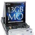 20.07.1999 Новости Испытывая новый магнитооптический накопитель GigaMO MCD3130SS (485 долл.) компании Fujitsu, мы дивились совершенству современных технологий. Это миниатюрное SCSI-устройство, устанавливамое в стандартный внутренний отсек размером 3,5 дюйма, работает с магнитооптическими картриджами емкостью 1,3 Гб, 640, 540, 230 и 128 Мб. Паспортная непрерывная скорость чтения 1,3 Гб диска в зависимости от адресуемой дорожки колеблется в диапазоне от 3,5 до 5,92 Мб/с (частота вращения 3214 об/мин), скорость диска емкостью 540 или 640 Мб - в диапазоне от 2,9 до 4,9 Мб/с (4500 об/мин).До появления MCD3130SS не существовало 3,5-дюймовых магнитооптических накопителей емкостью более 640 Мб. Чтобы удвоить вместительность картриджа без изменения его конструкции, инженеры компаний Fujitsu и Sony (последняя выпускает картриджи на 1,3 Гб) были вынуждены решить непростую дилемму. С одной стороны, для сохранения совместимости со стандартными носителями емкостью 128 - 640 Мб пришлось использовать прежние оптическую и магнитную системы. С другой стороны, размеры нагреваемого на поверхности диска участка должны быть не меньше длины волны используемого лазера. Выйти из положения помогла новая технология MSR (Magnetically induced Super Resolution - получение сверхразрешения с помощью магнитного поля). В результате ее применения шаг дорожек был уменьшен с 1,1 до 0,9 мкм, а длина магнитного домена, хранящего один бит информации, - с 0,49 до 0,29 мкм. На передней панели дисковода Fujitsu MCD3130SS ...