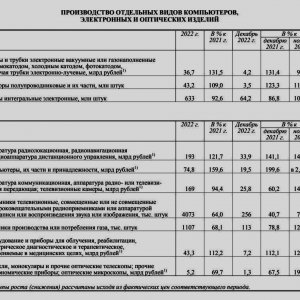 10.02.2023 Новости, Рейтинги, исследованияВ 2022 г. компьютеров, их частей и принадлежностей (в денежном выражении) было произведено на 59,6% больше, чем в 2021-м; а в декабре 2022 г. — на 99,6% больше, чем в декабре 2021 г. В абсолютных цифрах объемы их производства составили 74,8 млрд. руб. по итогам всего 2022 г. и 19,5 млрд. руб. по итогам декабря 2022 г. Это следует из 340-страничного отчета «Социально-экономическое положение России. 2022 год», который Федеральная служба государственной статистики (Росстат), опубликовала 8 февраля 2023 г. Однако с комплектующими (схемы интегральные электронные) дела обстоят не так хорошо: по оценкам Росстата, в 2022 г. их (в натуральном выражении) было произведено на 7,4% меньше, чем в 2021-м; а в декабре 2022 г. — на 13,2% меньше, чем в декабре 2021 г. В абсолютных цифрах объемы их производства составили 633 млн. штук по итогам ...