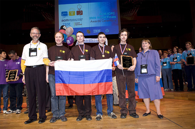 23.04.2009 Новости, Здравоохранение, образование, культура, Менеджмент21 апреля из Стокгольма пришла удивительная новость: три из четырех золотых медалей в финале студенческого командного чемпионата мира по программированию ACM ICPC завоевали российские команды. Еще никогда наши команды не занимали на одном чемпионате мира первое, третье и четвертое места! Кроме того, еще одна российская команда получила серебряные медали, заняв восьмое место. К успехам российских команд общественность начинает привыкать, но каждый год российские молодые программисты достигают все лучших результатов. Отметим, что практически нет других видов человеческой деятельности, где у России были бы такие успехи! При этом необходимо учесть, что на стадии отборочных соревнований в чемпионате участвовало 7109 команд из 1838 университетов 88 стран мира, а в финале — 100 команд . В этом году, как и прошлом, чемпионом мира стала команда Санкт-Петербургского государственного университета информационных технологий, механики и оптики. Правда, в новом составе места Федора Царева, Дмитрия Абдрашитова и Дмитрия Паращенко заняли Максим Буздалов, Евгений Капун и Владислав Исенбаев. Они получили золотые медали и стали чемпионами мира и Европы 2009 года! Тренер тот же, что и все последние годы — Андрей Станкевич, и руководитель команды тот же — Владимир Глебович Парфенов. Команда решила 9 из 11 задач со штрафным временем 1381 минута. Второе место заняла команда университета Tsinghua (Китай). Они получили золотые медали и стали чемпионами Азии. Они также решили девять задач, но с ...
