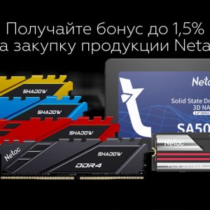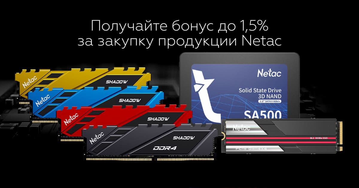 Закупайте продукцию Netac в период программы и получайте бонусы: Если сумма закупки за весь период составит от 500 долларов до 999, то вы получаете бонус в размере 1% от суммы закупки При сумме закупки от 1000 долларов до 4999 долларов – бонус 1,25%. Свыше 5000 долларов – 1,5% бонус, но не более 95 000 рублей *Бонус выдается универсальной подарочной картой или товарами из ассортимента ELKO. **Для получения бонуса необходимо зарегистрироваться в ... читать далее.