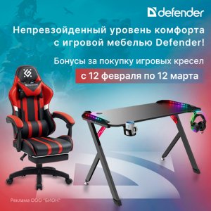 Впереди череда праздников, а значит, самое время порадовать себя и клиентов стильной и удобной игровой мебелью! При покупке игровых столов и кресел Defender вас ждут приятные бонусы: за каждые 20 000 руб закупки акционных товаров бонус 2 000 руб. Внимание! Бюджет программы ограничен, акция может быть закончена раньше заявленного срока. Призы будут выдаваться в течение месяца после завершения программы. Праздники уже близко – регистрируйтесь и получайте бонусы! По всем вопросам, связанным с проведением акции, обращайтесь к Елене Тимофеевой по e-mail: ETimofeeva@netlab.ru или по ... читать далее.
