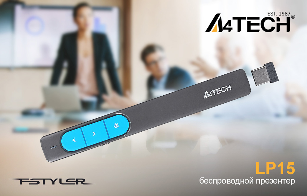 08.09.2020 ПродуктыПолезный помощник для эффективной работы с презентациями и изображениями. Компания A4Tech выпустила беспроводной презентер A4 LP15 в новом сером цвете для эффективной работы с презентациями и изображениями. Напомним, что в марте компания анонсировала выпуск устройства в белом и черном цвете. Презентер не требует установки специальных драйверов и конфигурируется автоматически благодаря технологии Plug&Play. Гаджет совместим с операционными системами Microsoft Windows, Apple MacOS и Google Android. © Устройство оборудовано несколькими кнопками для быстрого управления презентациями и документами, их легко найти наощупь, чтобы не отвлекаться во время выступления. Две основные кнопки отвечают за перелистывание страниц и слайдов в офисных программах Microsoft Office, а также во всех популярных браузерах. Есть отдельная кнопка, которая отвечает за включение лазерной указки, расположенной в верхней части презентера. В левой части A4 LP15 расположена кнопка включения и отключения устройства и индикатор, который начинает мигать при разрядке батареи. Корпус новинки выполнен в темно-сером цвете, который очень гармонично сочетается со всей офисной техникой, включая ноутбуки. Кнопки же сделаны из прочного высококачественного силикона яркого бирюзового цвета, что придает гаджету невероятно стильный вид. Новинка уже доступна для заказа в MERLION. ID / Наименование товара 1379901 / Презентер A4 Fstyler LP15 Radio USB (15м) серый Подробная информация и заказ онлайн: на партнерском ...