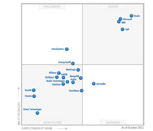 16.12.2014 ОбзорыНаправление систем управления базами данных (СУБД) является одним из старейших в ИТ, возможно, оно даже старше «операционных систем». За всю его полувековую историю можно выделить несколько периодов развития, и, наверное, не будет большой ошибкой сказать, что предпоследний этап начался в конце 1990-х, когда группу лидеров во главе с Oracle стала нагонять Microsoft со своим SQL Server. С появлением этого активного игрока конкурентная ситуация, естественно, резко обострилась, в результате чего начались процессы поглощения ИТ-гигантами специализированных разработчиков, и к середине прошлого десятилетия в данном сегменте, где ключевые позиции заняла «большая тройка» — IBM, Microsoft и Oracle, установилось относительное спокойствие. Но затишье было недолгим, поскольку вскоре появилось новые «возмутители порядка» — сначала ряд Open Source-проектов, а потом и разработчики решений на базе качественно новых архитектур и технологий (non-SQL, in-memory). Мировой рынок СУБД опять пришел в движение... К этому надо добавить, что стабильность в сфере СУБД (а точнее, всех корпоративных ИТ) была потревожена в нынешнем году в России из-за изменений в отношениях с западным миром, в результате чего актуальной задачей стал поиск возможных альтернатив традиционным ИТ-поставщикам. Отечественные заказчики, системные интеграторы, разработчики стали активнее изучать весь спектр возможных предложений в данной сфере. Помочь в этом деле может вышедший минувшей осенью очередной отчет Gartner «Магический ...