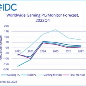 23.03.2023 Обзоры, Зарубежные рынки, ПК, серверы и периферийное оборудование, Средства визуализацииКомпания IDC отмечает падение глобального рынка игровых ПК и игровых мониторов в 2022 г. после трёх лет его активного роста. Так, поставки игровых ПК в мире в 2022 г. упали на 6.4% относительно 2021 г., а игровых мониторов — на 7.1%, в итоге за 2022 г. было поставлено 44.9 млн игровых ПК и 17.3 млн игровых мониторов, хотя это, конечно, было значительно больше, чем в предпандемийном 2019 г. В 2023 г. IDC ожидает ещё большее сокращение объёма мирового рынка в натуральном выражении, но с 2024 г. рынок по прогнозу вернётся к восстановлению. Аналитики объясняют снижение в 2022-2023 гг. и загруженностью складов, и отсутствием интересных новых решений. Как отмечают эксперты, обилие графических плат на вторичном рынке способствует продлению жизни имеющихся сегодня игровых десктопов, что также снижает спрос на новые системы. Кроме того, развитие мобильных и миниатюрных игровых систем теперь оттягивает спрос на традиционные игровые ПК-системы. Поставки игровых ПК-мониторов в 2022 г. упали впервые с 2016 г, когда IDC начала изучать данный сегмент рынка. Как полагают аналитики, сейчас потребуется по крайней мере два квартала для расчистки складов, но во втором полугодии 2023 г., когда появятся новые разработки в сфере ПК-мониторов, начнётся восстановление. Несмотря на краткосрочный провал, аналитики считают, что в ближайшее время рынок игровых ПК-систем превзойдёт рынок традиционных ПК и мониторов (см. рисунок): его совокупный объем вырастет с 58.8 млн в 2023 г. до 75.1 млн в ...